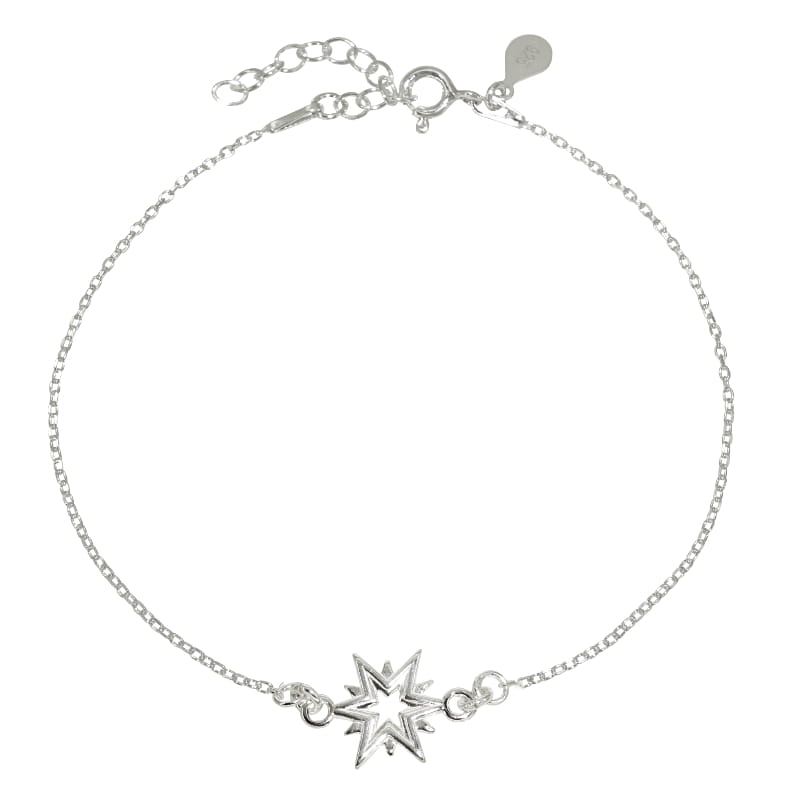 Piękna, srebrna bransoletka ozdobiona uroczą gwiazdą.