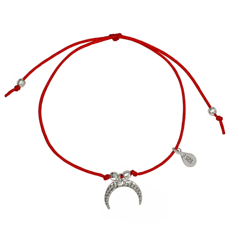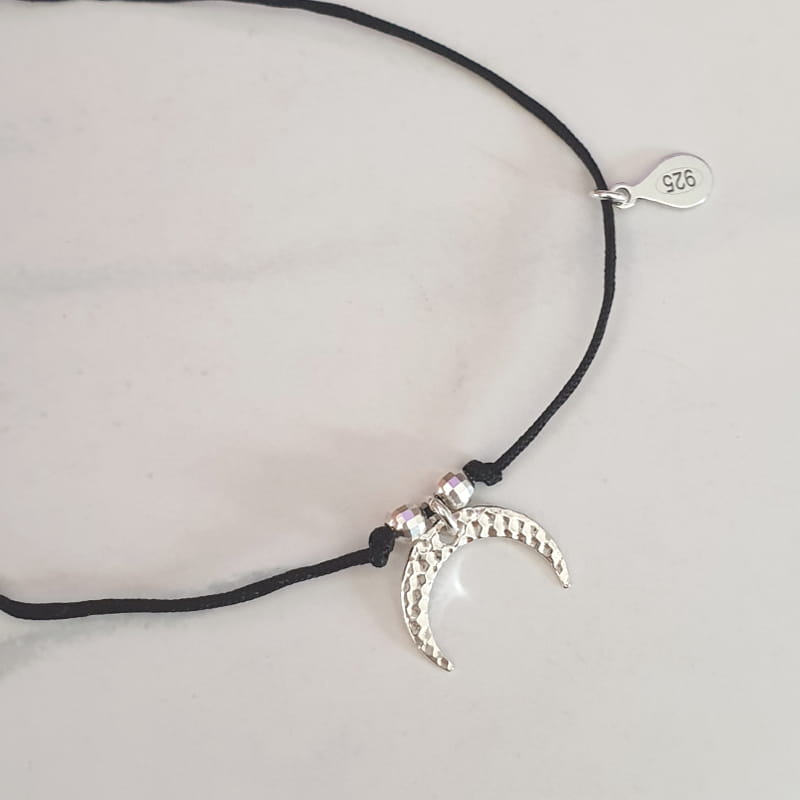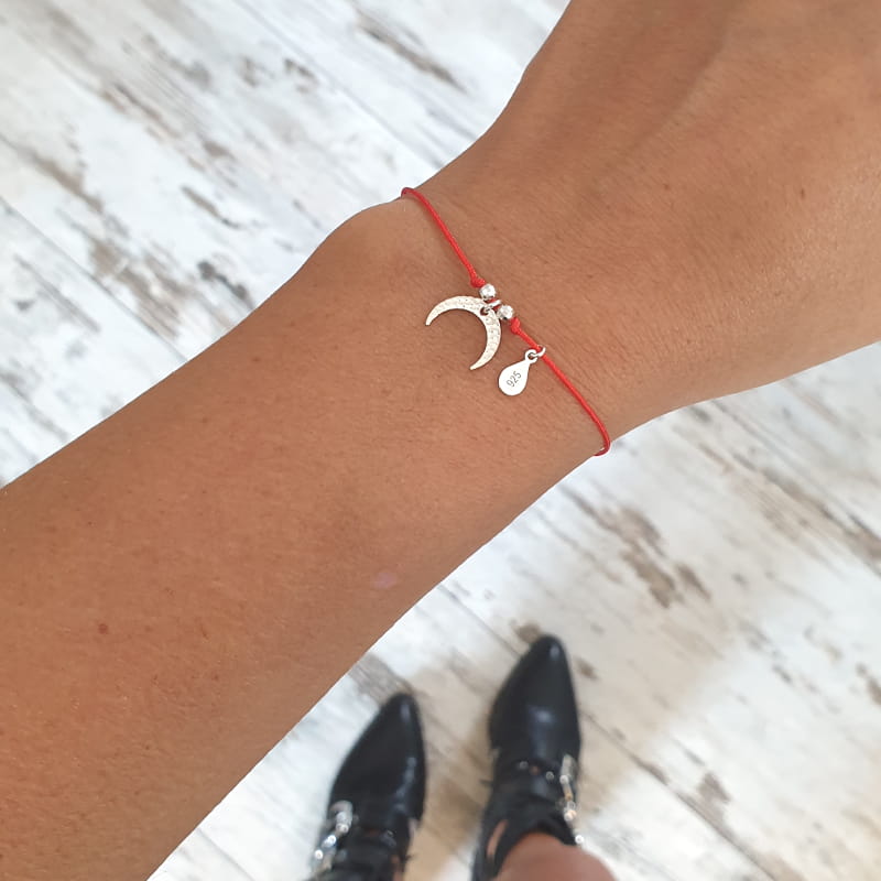 Bransoletka dla miłośników subtelnych dodatków, wykonana ze sznurka i dodatków srebrnych. Delikatny, migoczący księżyc zawieszony na sznureczku, którego kolor możesz wybrać.