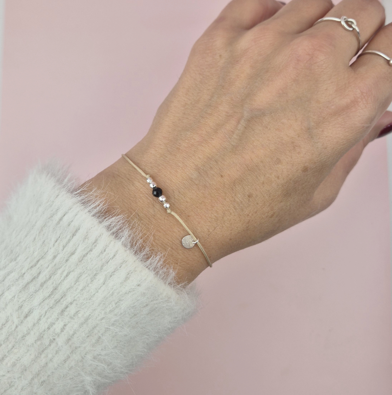Delikatny, beżowy lub czerwony sznurek w połączeniu z subtelnym blaskiem srebra i kamienia, tworzy elegancki i minimalistyczny dodatek, który podkreśli każdą stylizację. Regulowana długość pozwala idealnie dopasować bransoletkę do nadgarstka, a naturalny kamień dodaje uroku i wyjątkowego charakteru. Doskonały wybór na prezent dla bliskiej osoby lub jako stylowy akcent dla siebie.
