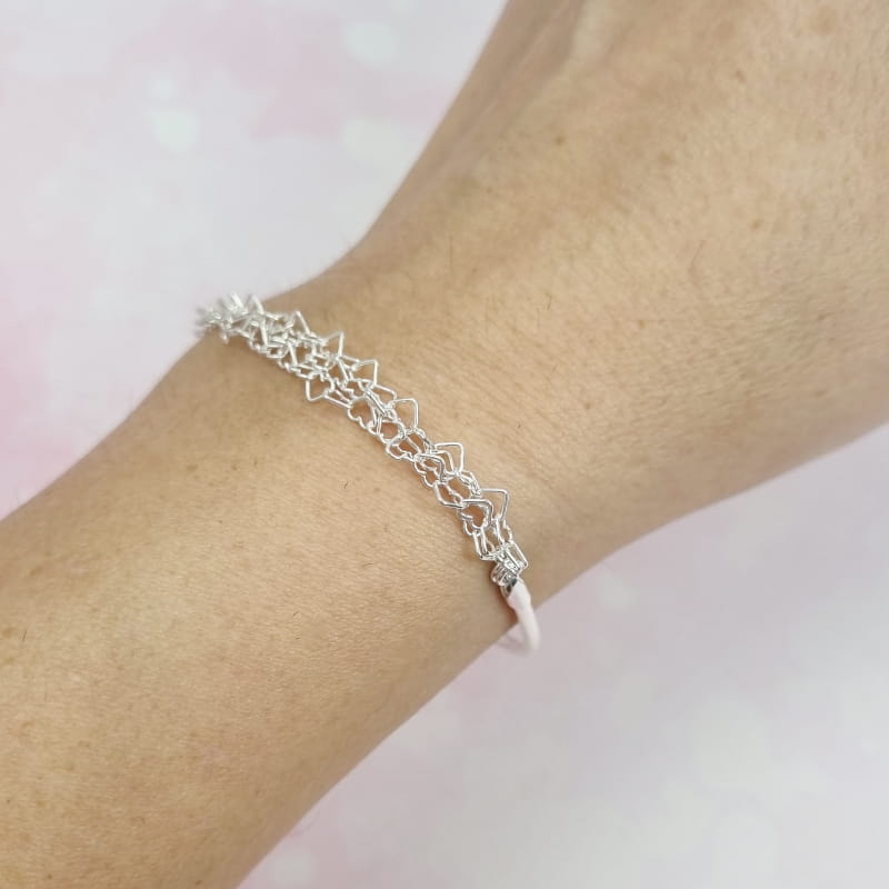 Bransoletka srebrna Rurka z Łańcuszkami Serca