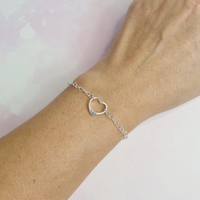 Śliczna bransoletka którą wyrazisz miłość. Subtelna forma serduszek symbolizuje miłość, uczucia i romantyzm, a wykonanie ze srebra próby 925 gwarantuje trwałość i ponadczasowy blask. To doskonały wybór na romantyczną kolację lub na prezent.