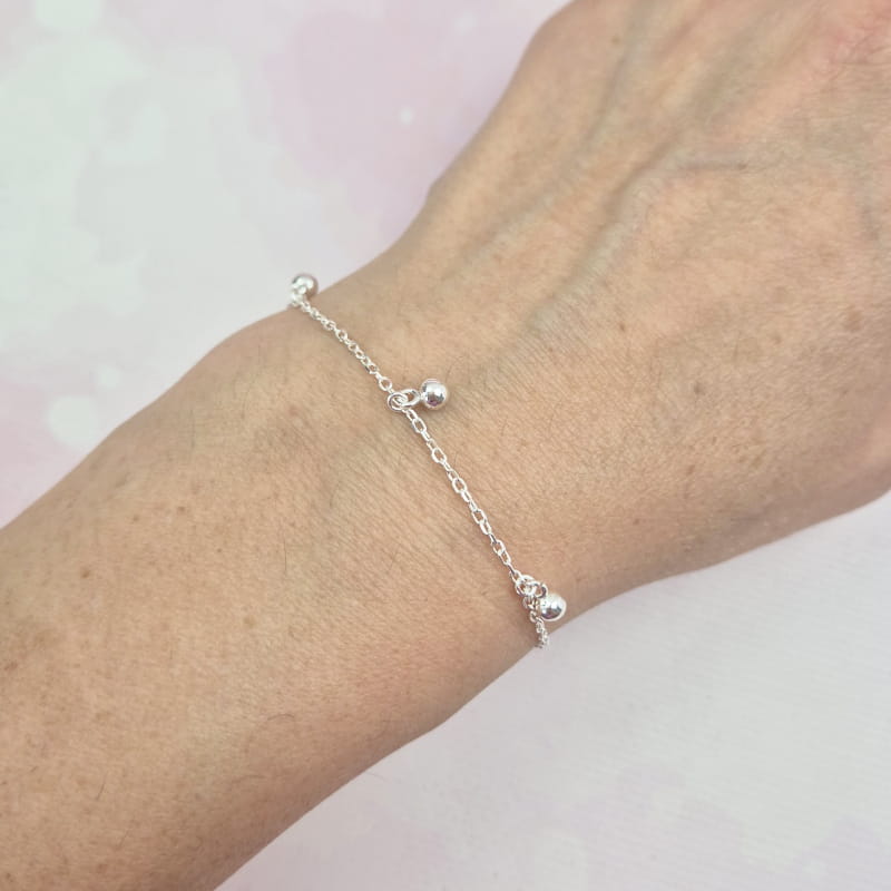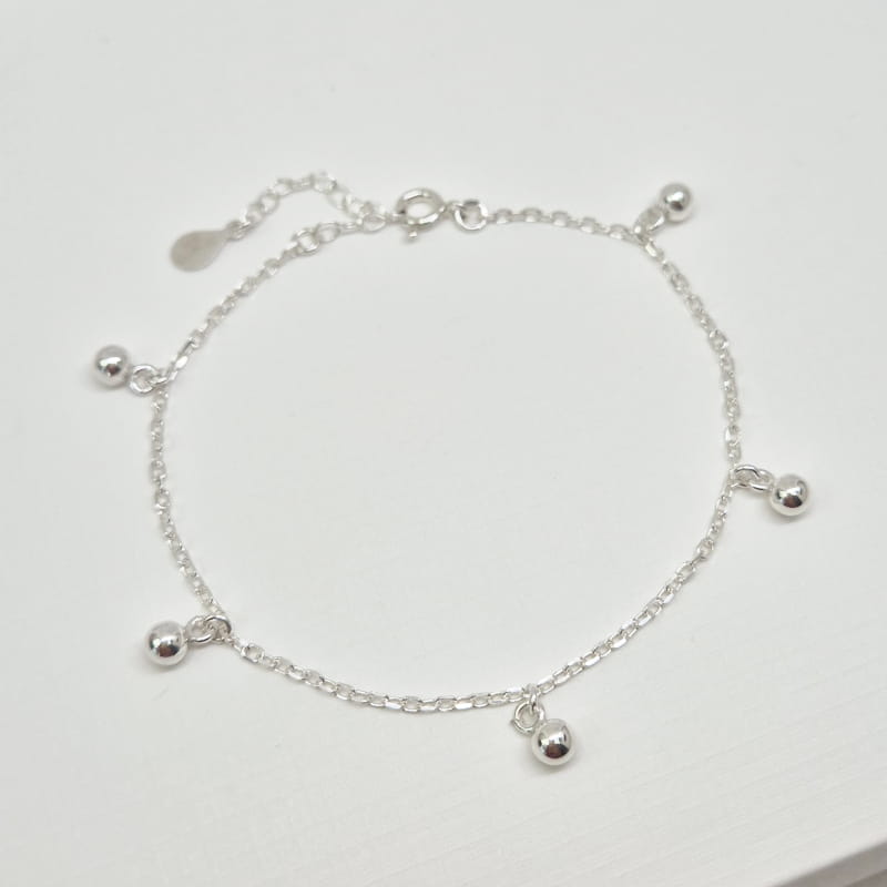 Lubisz biżuterię w stylu gypsy? Ta biżuteria jest stworzona dla Ciebie. Delikatna i stylowa bransoletka wykonana ze srebra próby 925, ozdobiona pięcioma subtelnymi kuleczkami, które z gracją poruszają się przy każdym ruchu. Idealna na co dzień i na wyjątkowe okazje – doda blasku każdej stylizacji.