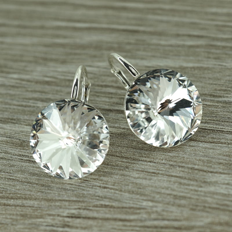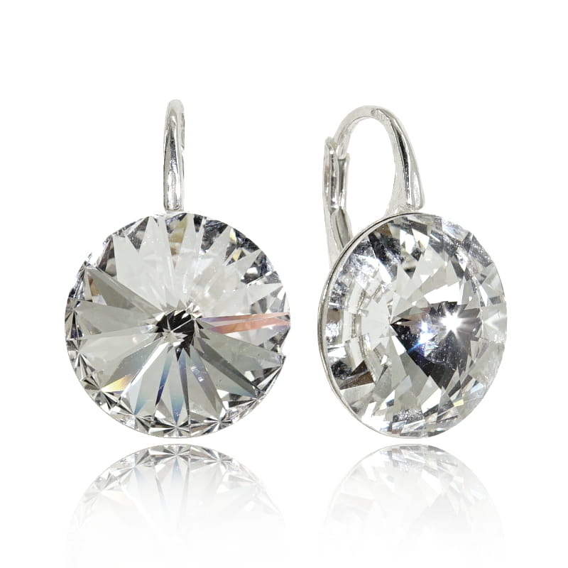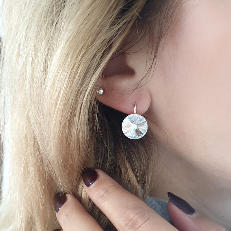 Klasyczne i błyszczące kolczyki z przepięknymi kryształkami Rivoli od Swarovskiego. Przepięknie połyskujące kryształki na wygodnym zapięciu będą ozdobą zarówno wytwornej kreacji jak i codziennego stroju.