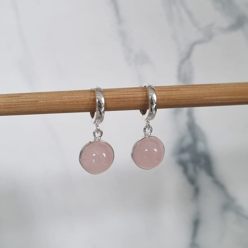 Piękno kamienia naturalnego w klasycznych i wygodnych kolczykach. Kolczyki kółeczka Solo z kamieniem naturalnym Kwarcem Różowym to minimalistyczna ozdoba podkreślająca naturę.