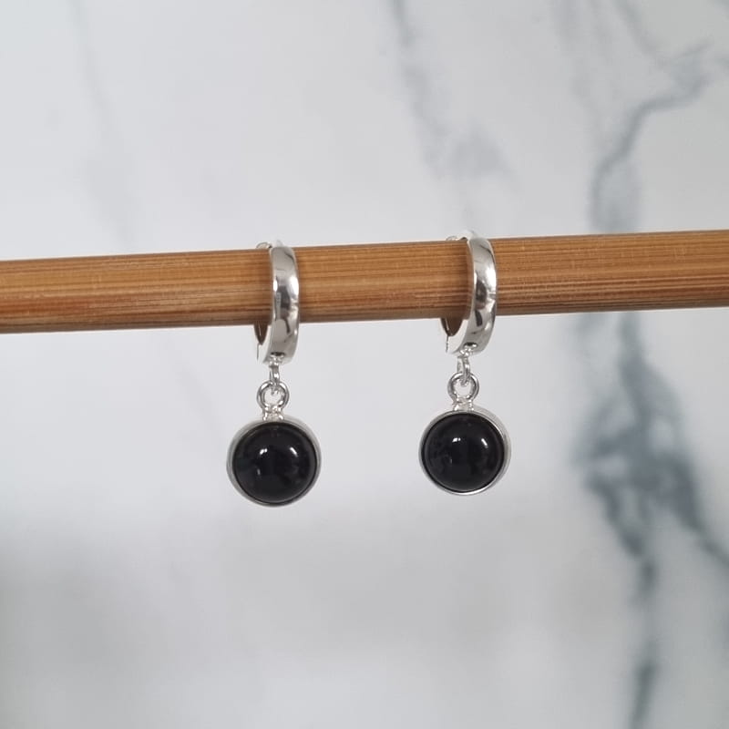 Piękno kamienia naturalnego w klasycznych i wygodnych kolczykach. Kolczyki kółeczka Solo z kamieniem naturalnym Onyksem to minimalistyczna ozdoba podkreślająca naturę.