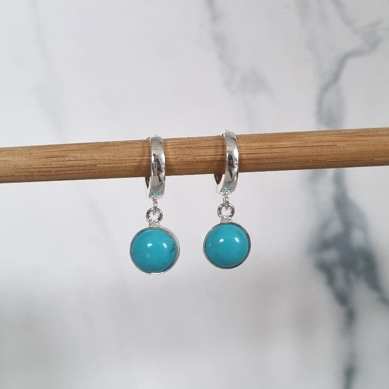 Piękno kamienia naturalnego w klasycznych i wygodnych kolczykach. Kolczyki kółeczka Solo z kamieniem naturalnym Turkusem to minimalistyczna ozdoba podkreślająca naturę.
