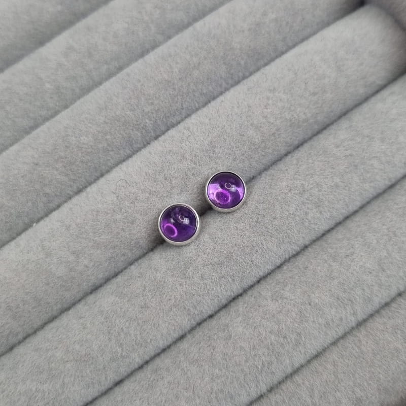 Kolczyki srebrne wkrętki Solo z Ametystem 6mm