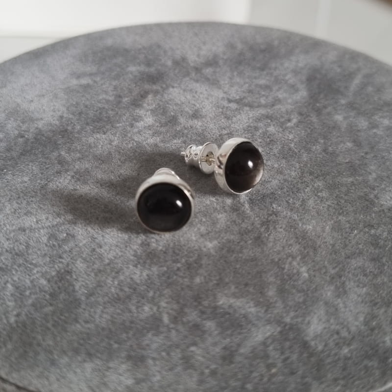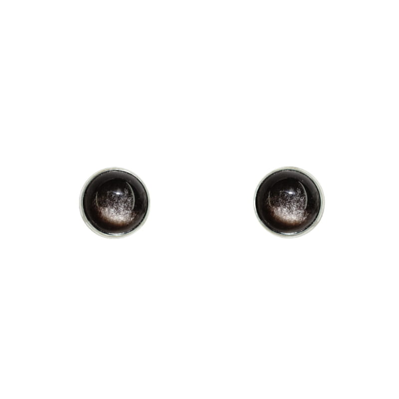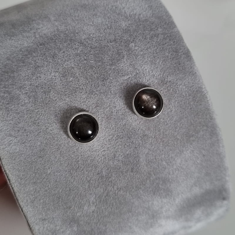 Kolczyki srebrne wkrętki Solo z Obsydianem Srebrzystym 8mm