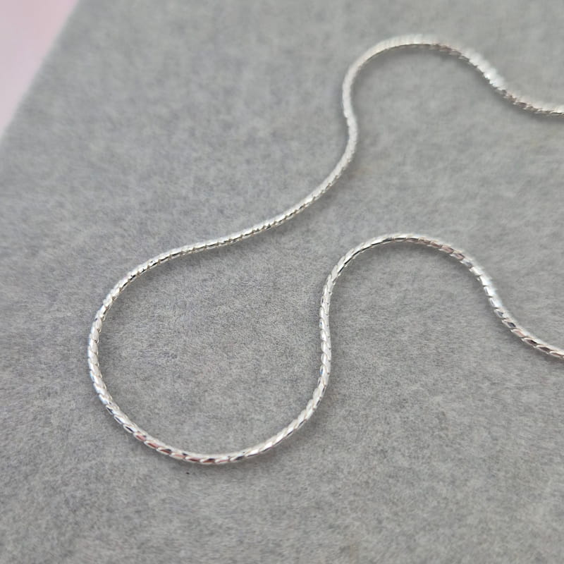 Piękny błyszczący łańcuszek, przypominającym żmijkę, okrągły i fantastycznie połyskujący.