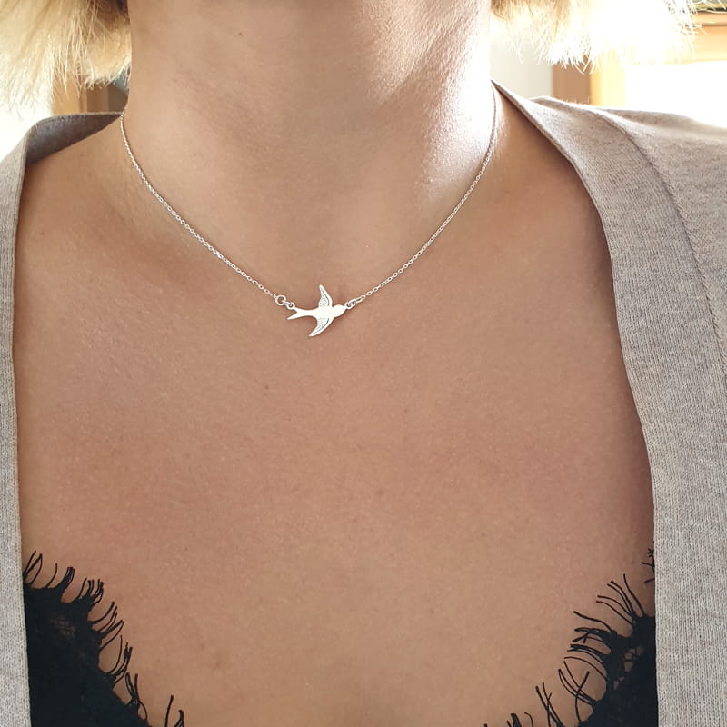 Piękny naszyjnik, delikatny łańcuszek z jaskółką. Subtelny naszyjnik wspaniale prezentuje się na dekolcie.