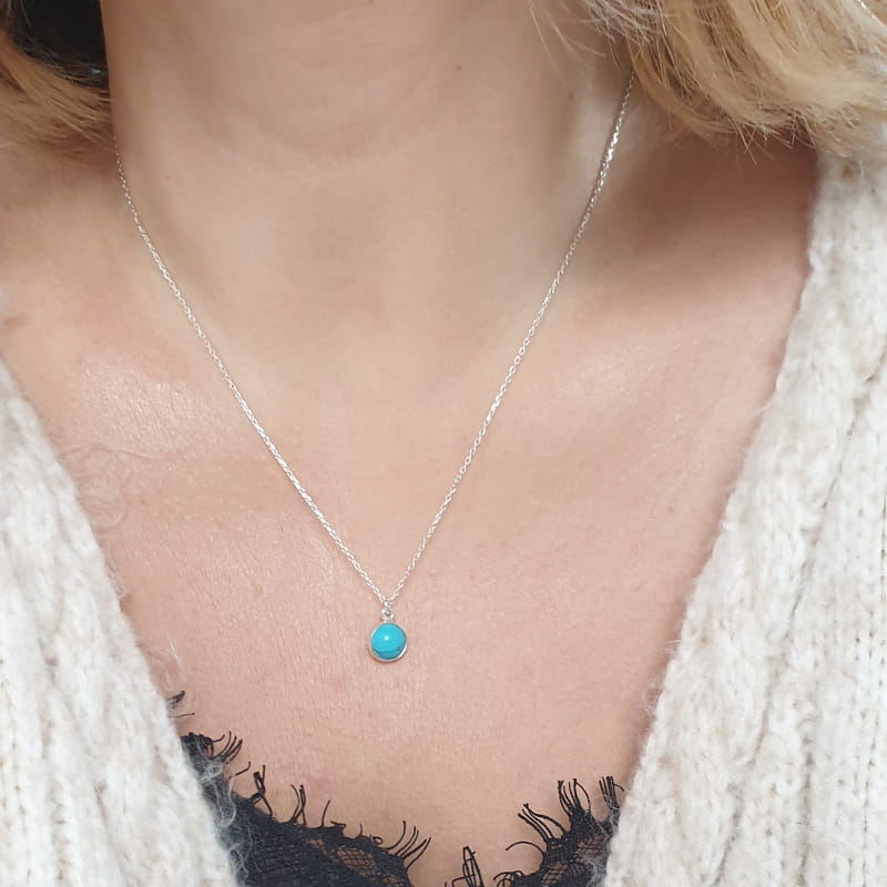 Odkryj piękno natury i funkcjonalny design w jednym! Naszyjnik Solo to ręcznie wykonana biżuteria ze srebra próby 925 i kamienia naturalnego - Turkusu, która zachwyca swoim minimalistycznym stylem i klasyką.